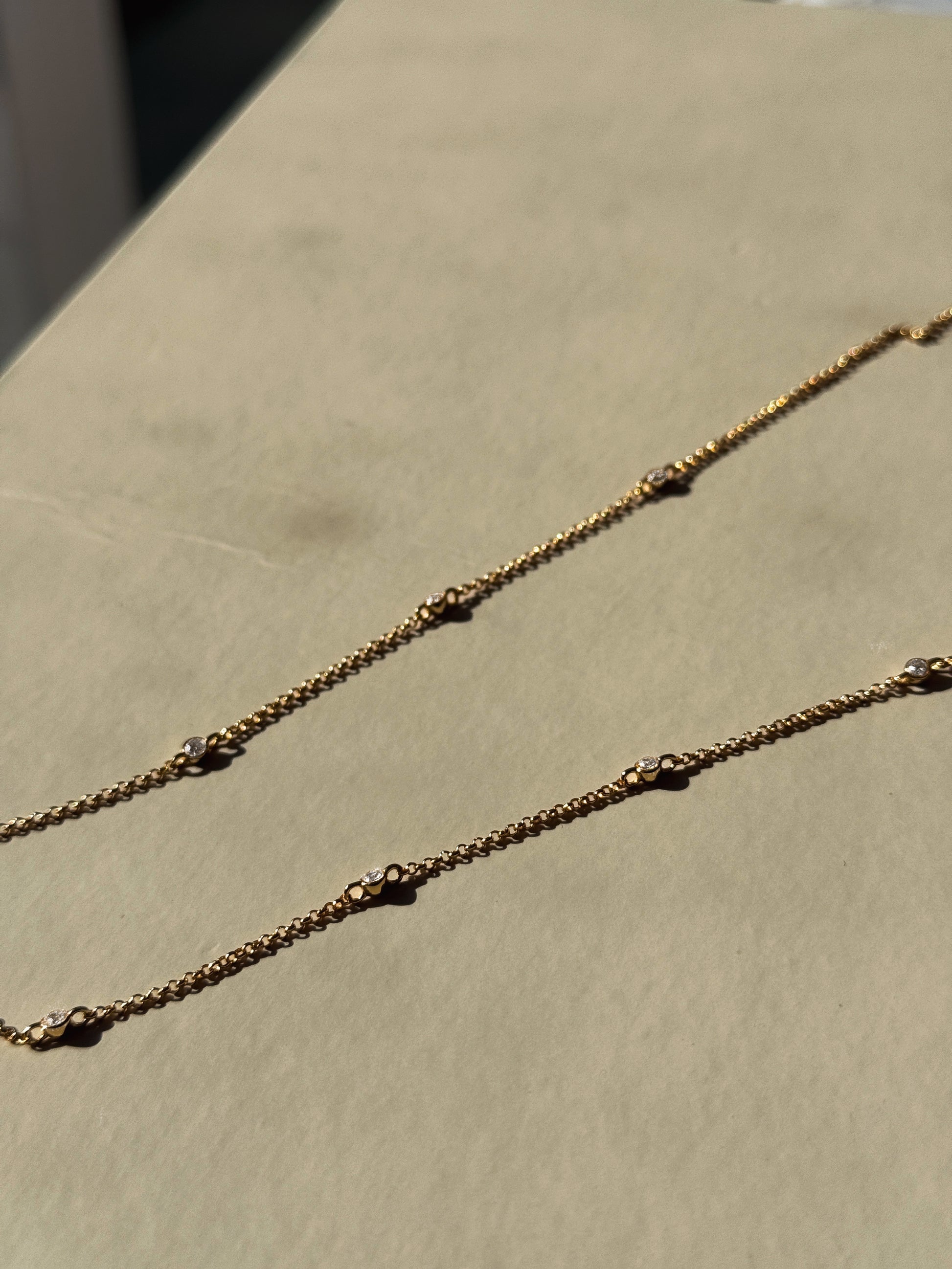 A modern essential designed for elegance in every layer. This fine gold-plated sterling silver cable chain is delicately punctuated with evenly spaced gemstones, adding a subtle shimmer that catches the light with every movement. Lightweight yet durable, it’s the perfect foundation for layering pendants or wearing solo as a refined statement. The simplicity of the chain allows the gems to breathe, creating a rhythm of quiet luxury. Crafted with waterproof coating for everyday wear, it’s a versatile piece that bridges minimalism with brilliance.