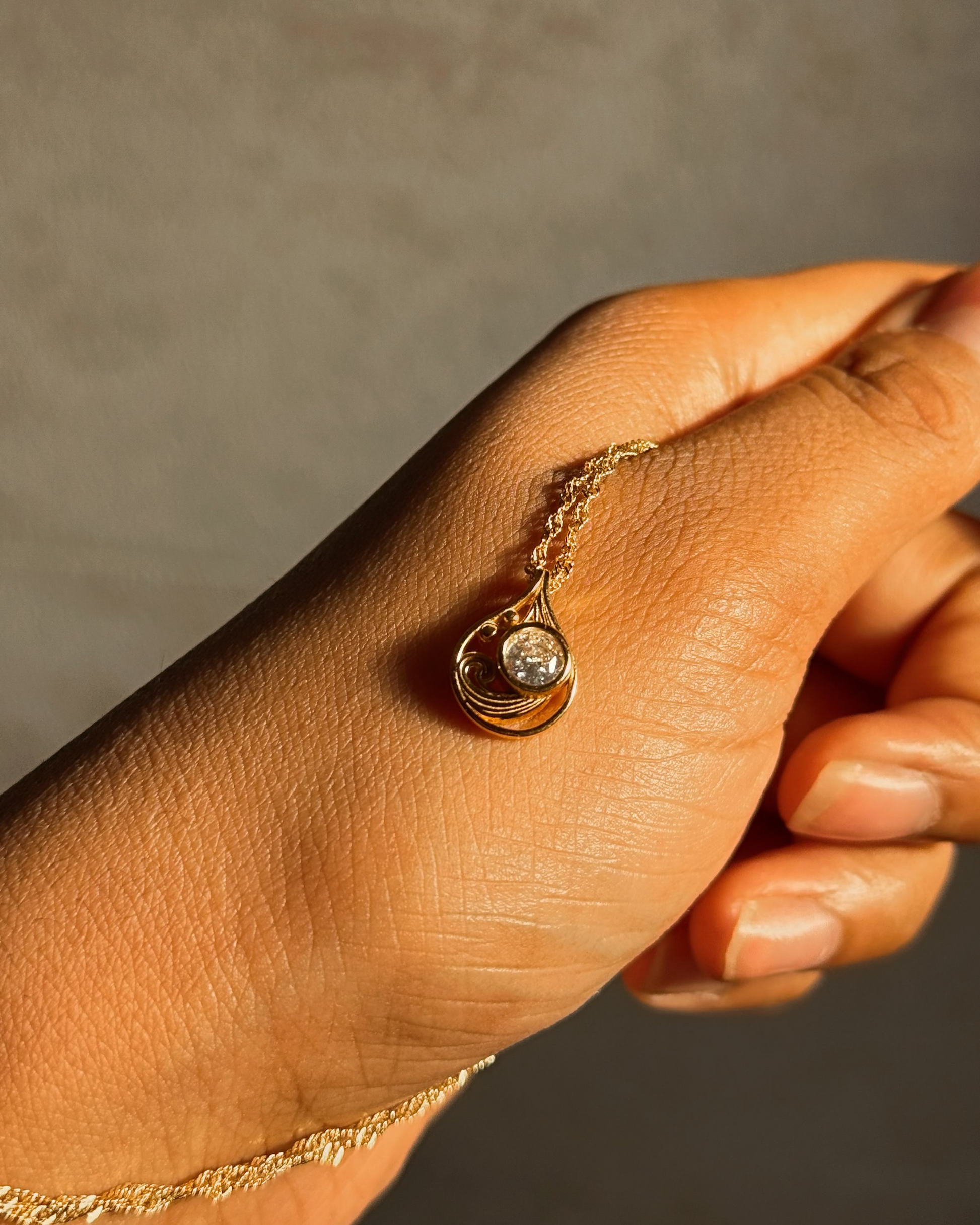 Inspired by Lakshmi, goddess of abundance and flow, this pendant honours the sacred connection between water and prosperity. The wave symbolizes continual renewal — a gentle reminder that love, wealth, and blessings are always in motion.